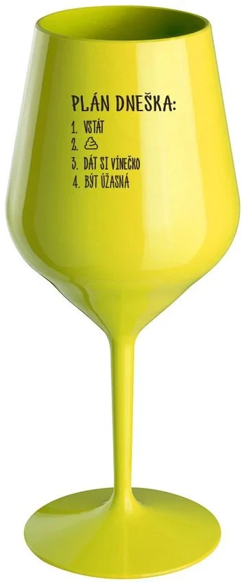 PLÁN DNEŠKA - VSTÁT - žlutá nerozbitná sklenice na víno 470 ml