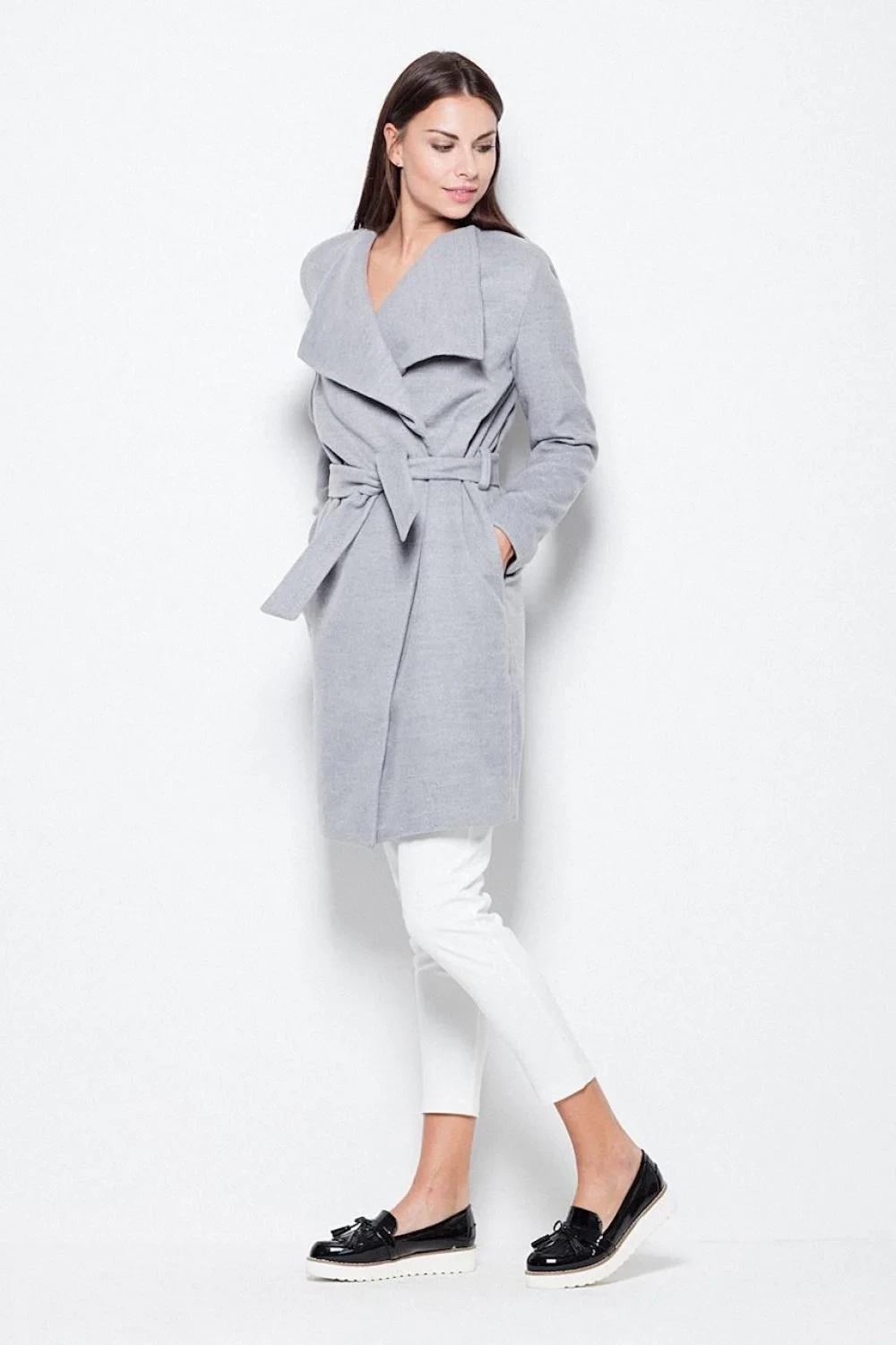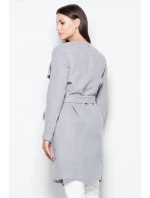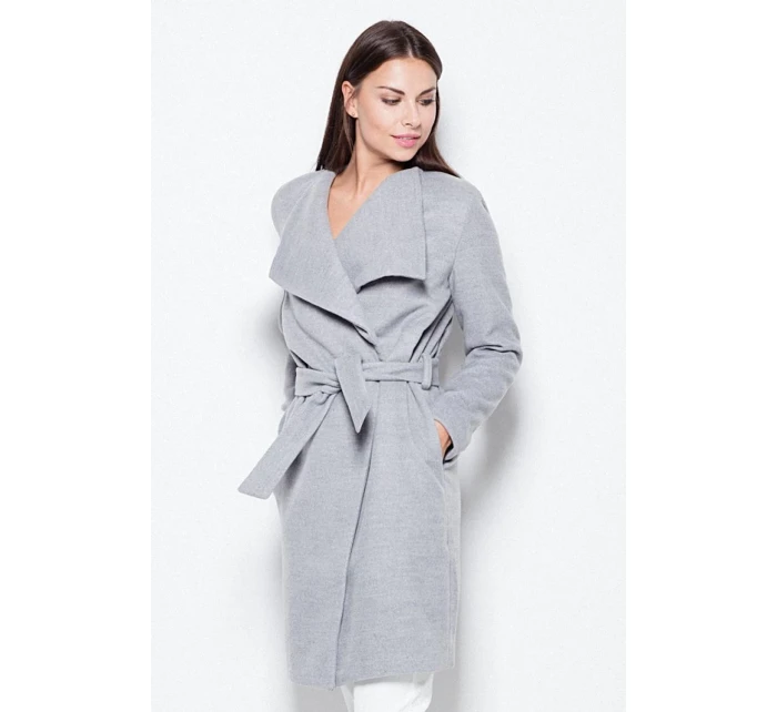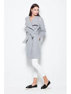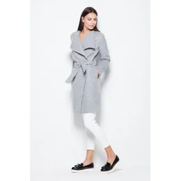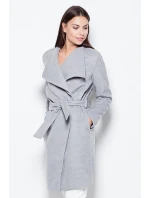 Elegantní kabát, zavazovaný v pase s působivým rozšířeným límcem. Model klasického střihu.