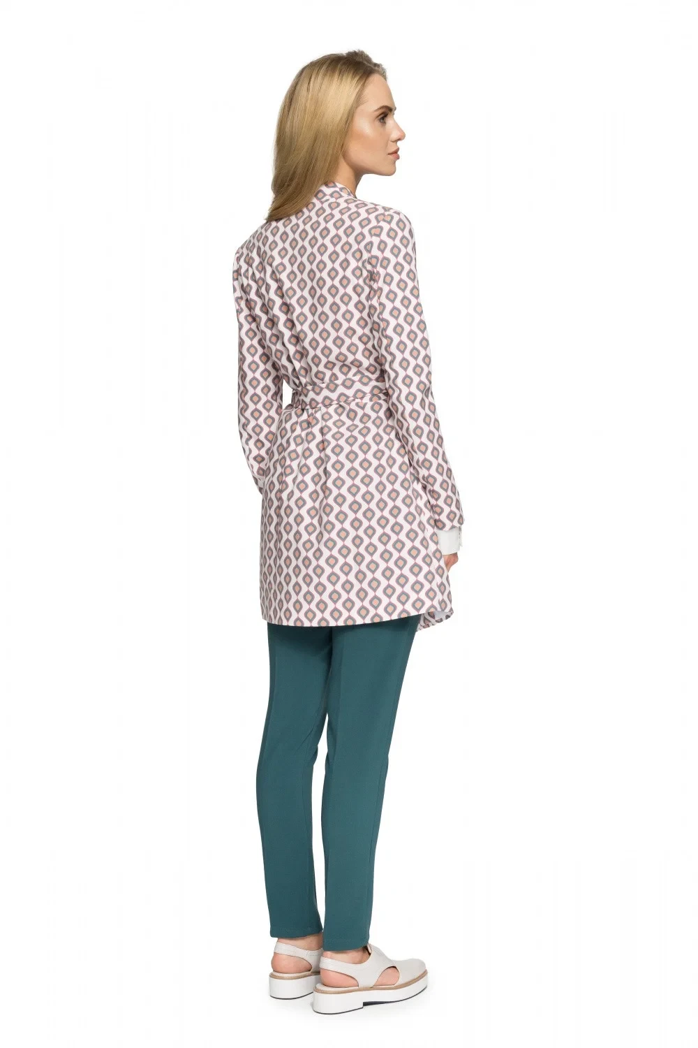 Tento stylový a velmi žensky působící kabát z potištěné látky vás v chladnějších dnech ochrání před chladem a bude elegantním doplňkem šatů nebo jiných outfitů se sukněmi či kalhotami. Plně podšité, zavazují se na pásek, k dispozici ve čtyřech barevných variantách.