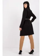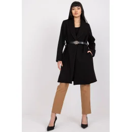 Dámský kabát s dlouhými rukávy a zapínáním na knoflíky. Kapsy na bocích. Kabát má navíc opasek.