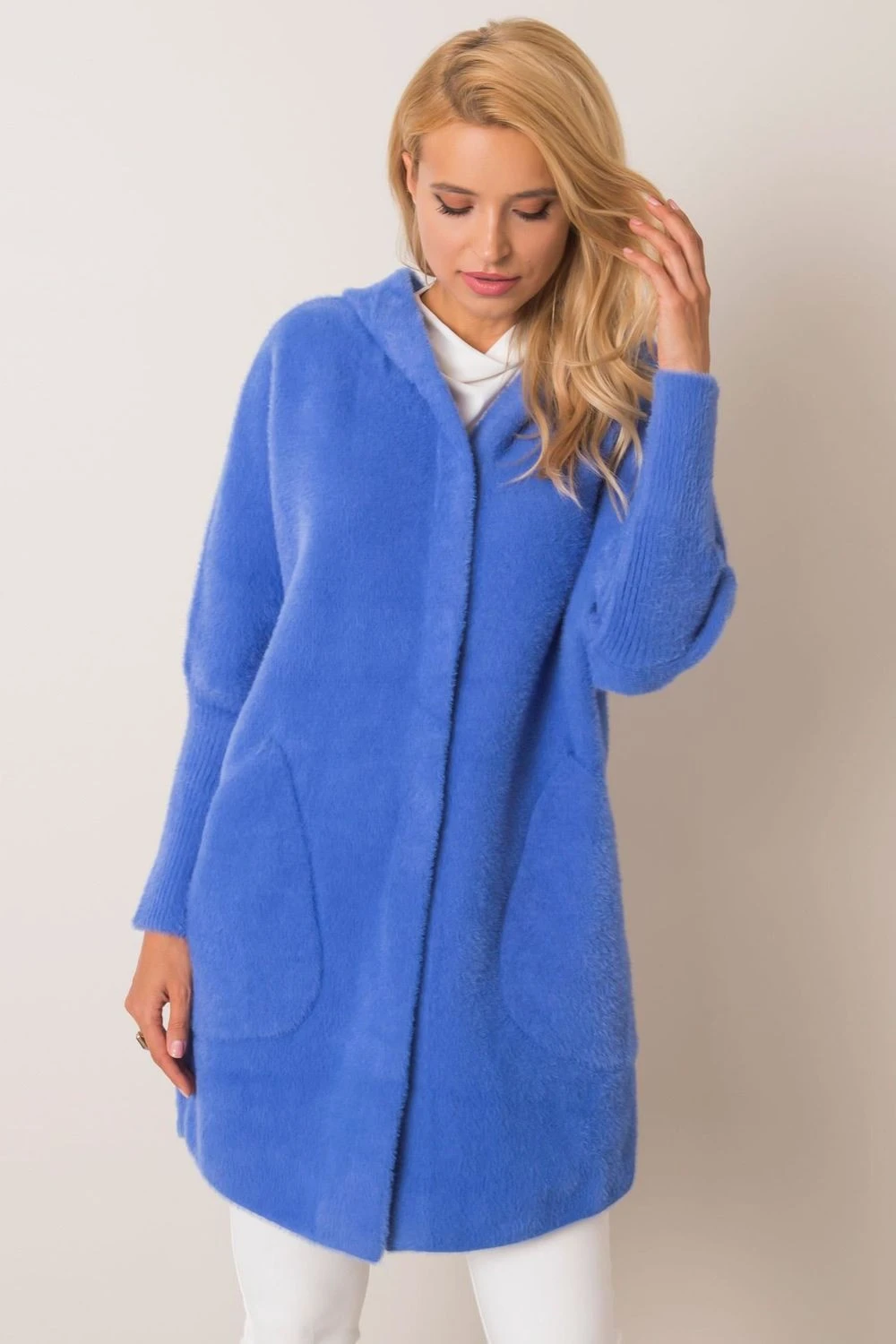 Dámský kabát se zapínáním na patentky, kapucí a kapsami. Ideální pro podzim.