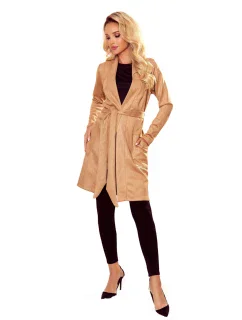 Dámský kabát s dlouhými rukávy a nakládanými kapsami. Kabát je plně podšitý a je doplněn páskem na zavazování.