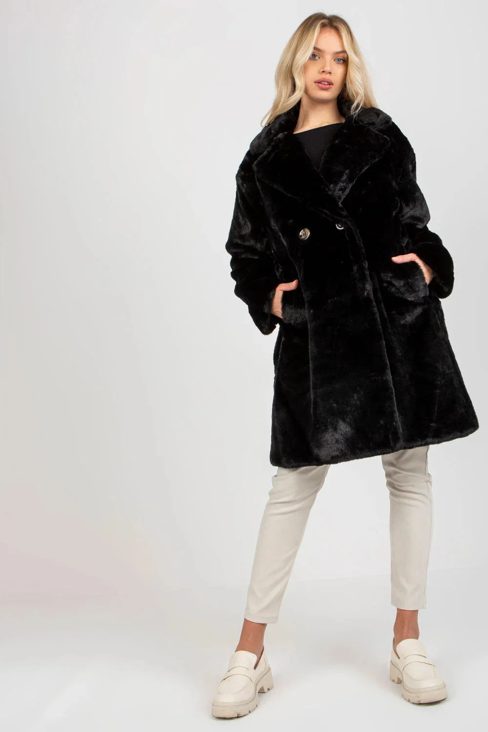 Kožich s dlouhými rukávy a zapínáním na knoflíky. Plně podšitý kabát s kapsami na bocích.
