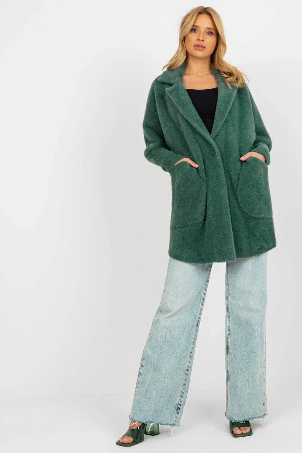 Dámský kabát se zapínáním na patentky a kapsami. Ideální na podzim i mimo něj.
