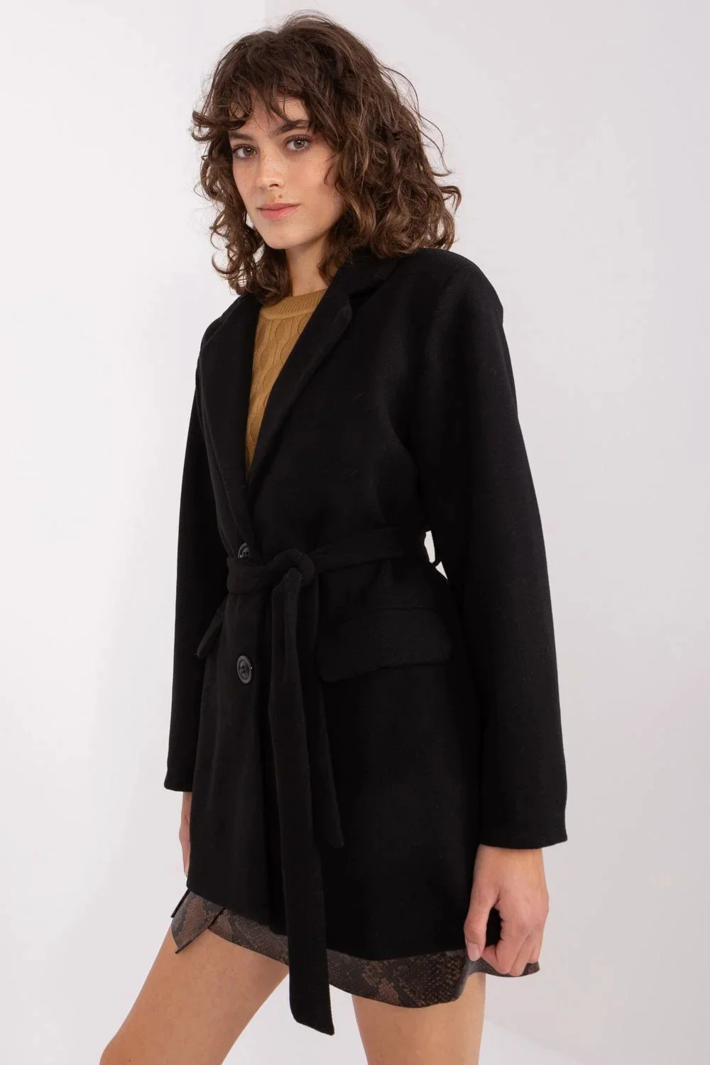 Tento hladký dámský kabát je esencí klasiky a elegance. Je vyroben z vysoce kvalitního polyesteru a vyznačuje se měkkým a hladkým materiálem, který mu dodává jedinečnou strukturu. Díky svému klasickému střihu je ideální volbou pro různé příležitosti, jak neformální, tak formálnější. Standardní délka a zapínání na knoflíky mu dodávají na univerzálnosti a umožňují jeho nošení po mnoho sezón. Přechodný kabát je ideální pro každodenní nošení a dodá eleganci každému outfitu. Díky podšívce zaručuje pohodlí a zároveň zdůrazňuje odolnost výrobku. Díky dlouhým rukávům je vhodný pro chladnější dny a absence dodatečného zateplení umožňuje jeho volné nošení v různých povětrnostních podmínkách. Je ideální volbou pro ženy, které oceňují jednoduchost, styl a nadčasovou eleganci.