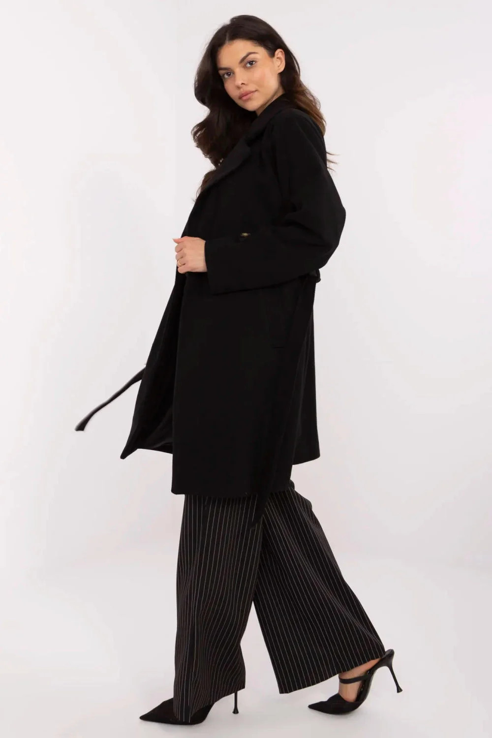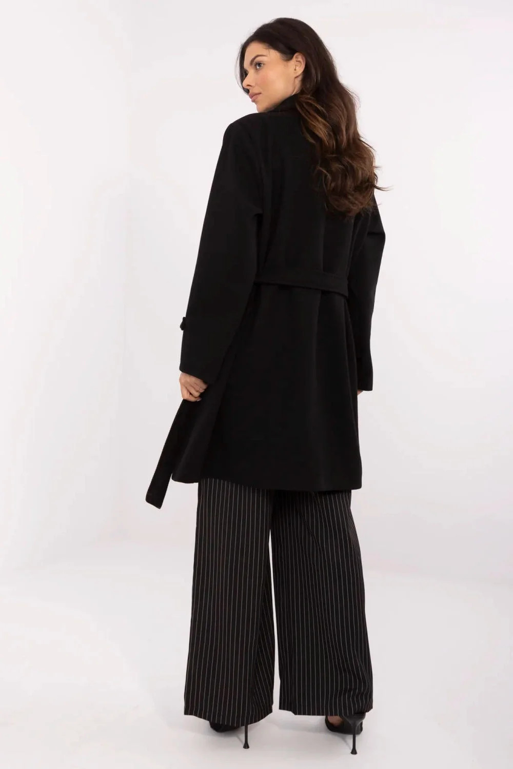 Elegantní dámský kabát se drobnými proužky a polštáři na ramenou je stylový a nadčasový návrh na přechodnou sezónu ideální na podzim, zimu (bez mrazu) a jaro. Vyrobený z vysoce kvalitního polyesteru a vybavený podšívkou poskytuje pohodlí nošení a upravený vzhled bez ohledu na příležitost. Kabát sahá pod koleno, má dlouhý rukáv, klasický střih bez kapuce a dvouradé zapínání na knoflíky, které spolu s vázáním v pase krásně zdůrazňuje pas a dodává siluetě ženský tvar. Drobné proužky jemně prolamují klasiku, vnášejí do ní nádech moderní elegance. Vsuvné kapsy jsou praktickým detail, který přidává funkčnost, a absence podšívky z něj činí ideální lehkou, stylovou vrstvu na chladnější dny jak do práce, tak i na více slavnostní výstupy.