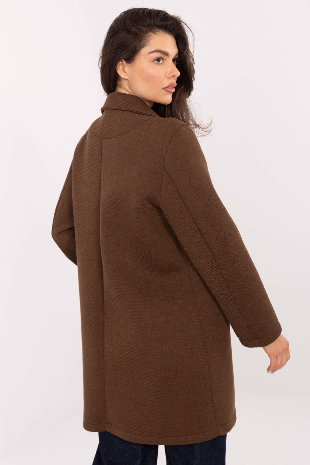 Elegantní dámský kabát vyrobený z moderní pěnové látky, ideální na přechodnou sezónu podzim, zimu a jaro. Vyrobena z polyesteru, viskózy a elastanu, ohromuje hladkou strukturou a odolností. Model standardní délky s límci, zapínáním na knoflíky, s dlouhými rukávy a praktickými kapsami. Stylovým akcentem je dekorativní brož na límci, která dodává celku jedinečný charakter. Lehký a nevyztužený, skvěle se hodí do každodenních i kancelářských outfitů.