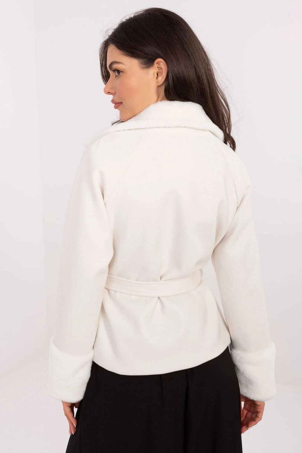 Tento elegantní dámský kabát s kožíškem je skvělou volbou na podzim/zimu, ideální jak do práce, tak i na více formální události. Vyrobený z vysoce kvalitní směsi polyesteru a elastanu poskytuje pohodlí nošení, odolnost a estetický vzhled. Model s kratším střihem vypadá mimořádně žensky a moderně. Má dlouhý rukáv, dvouradé zapínání na knoflíky a pásek na uvázání v pasu, který krásně zvýrazňuje postavu. Hladká struktura materiálu a kožíšek na dokončení dodávají celku elegantní charakter. Kabát je na podšívce, co zvyšuje pohodlí nošení, i když nemá žádné další zateplení, je ideální na chladnější, ale ne mrazivé dny. Jedná se o stylový model pro ženy, které oceňují klasiku v moderním provedení subtilní, elegantní a skvěle se hodící do každodenních outfitů.