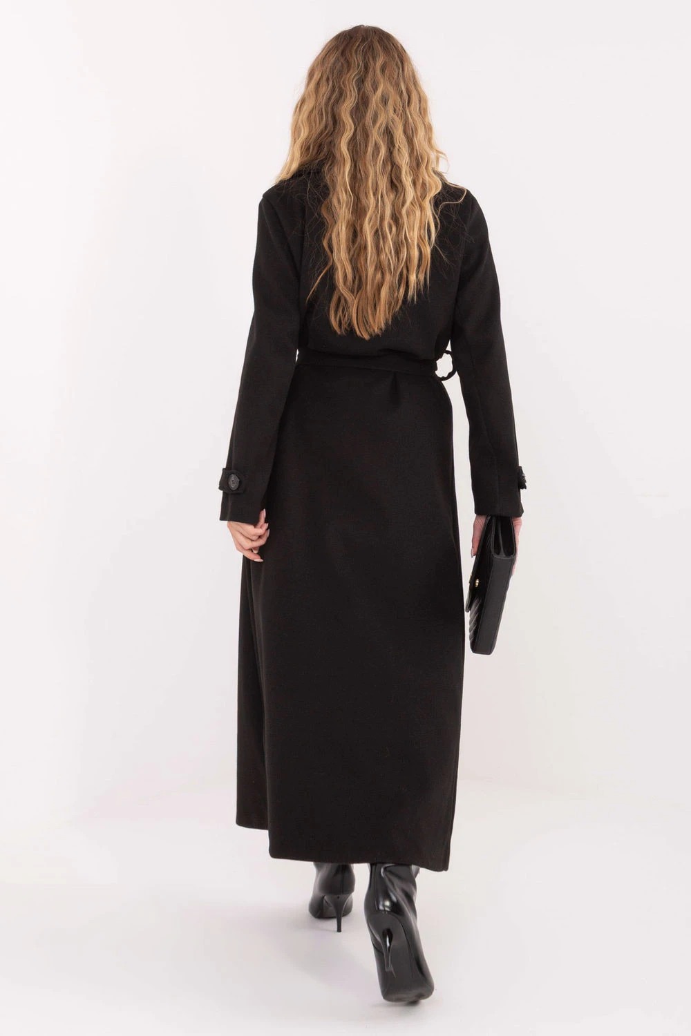 Dlouhý dámský kabát je elegantní nabídkou na přechodnou sezónu podzim, zima a jaro. Vyrobený z vysoce kvalitního polyesteru, v klasickém, hladkém vzoru, kombinuje styl a funkčnost. Model s límci, širokým límcem a dvouřadým zapínáním na knoflíky zdůrazňuje elegantní charakter každé stylizace. Kabát má vsunuté kapsy, pásek na vázání v pasu a podšívku, která zajistí pohodlí a komfort nošení. Skvěle se hodí jak do každodenních, společenských, tak i do kancelářských stylizací, přidávajíc eleganci a třídu každé ženě.