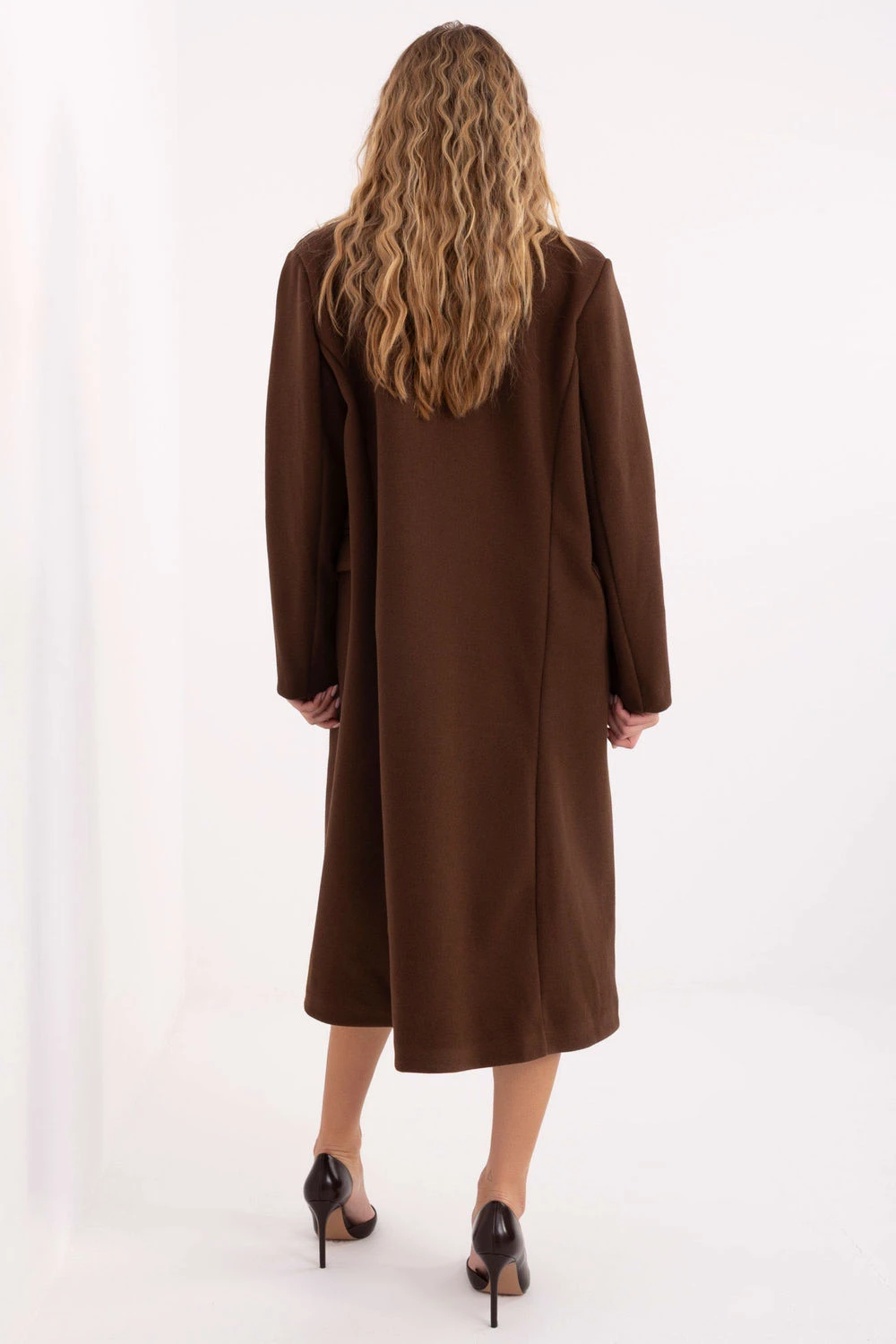 Elegantní dlouhý dámský kabát je nadčasový model, který se skvěle hodí jak na každý den, tak i do pracovních nebo společenských stylizací. Vyrobený z polyesteru, s hladkou strukturou materiálu, vypadá minimalisticky a elegantně, zdůrazňuje klasický charakter. Kabát má vestavěné polštářky na ramenech, které dodávají siluetě jasnou linii a elegantní střih. Otevírané límce a jednořadé zapínání na knoflíky zdůrazňují jeho nadčasový střih. Model je vybaven podšívkou a praktickými kapsami vloženými pod patkami, které dotvářejí celkový vzhled. Je to lehký, přechodný kabát, skvělý na podzim, zimu a jaro, ideální volba pro ženy, které ocení klasiku v moderním pojetí.