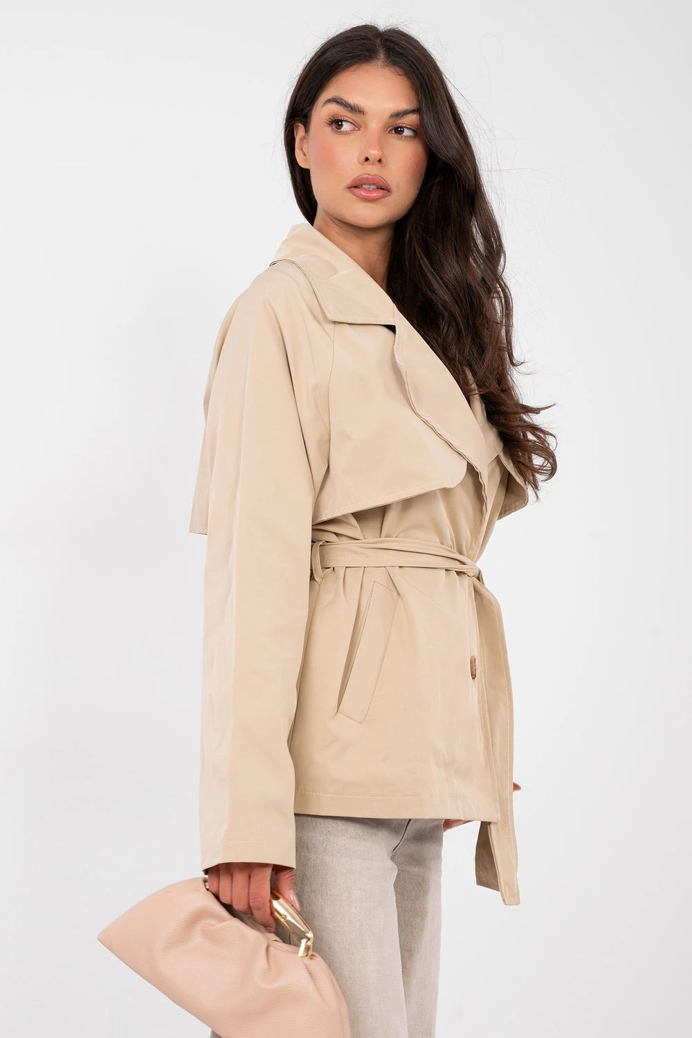Elegantní dámský trenčkot v casual stylu, ideální na každodenní nošení i do práce. Přechodný model se hodí na podzim, zimu i jaro. Hladký vzor zdůrazňuje nadčasový charakter trenčkotu, a krátká délka mu dodává moderní a lehký vzhled. Vyrobený z vysoké kvality polyesteru, lehký a pohodlný na nošení. Trenčkot má dlouhý rukáv, jednořadé zapínání na knoflíky a pásek na přezouvání v pase, který umožňuje přizpůsobit střih postavě a zvýraznit ženskou siluetu. Praktické kapsy přidávají funkcionalitu a pohodlí každodenního nošení. Univerzální volba do práce i na běžné nošení, která kombinuje klasiku s moderním stylem.