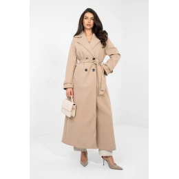 Dlouhý dámský kabát je elegantní nabídkou na přechodnou sezónu podzim, zima a jaro. Vyroben z vysoce kvalitního polyesteru, v klasickém, hladkém vzoru, spojuje styl a funkčnost. Model s límci, širokým límcem a dvouřadým zapínáním na knoflíky zdůrazňuje elegantní charakter každého outfitu. Kabát má vložené kapsy, pásek na předvazek v pasu a podšívku, což zajišťuje pohodlí a komfort při nošení. Skvěle se hodí jak do každodenních, návštěvních, tak do kancelářských outfitů, přidávajíc eleganci a třídu každé ženě.