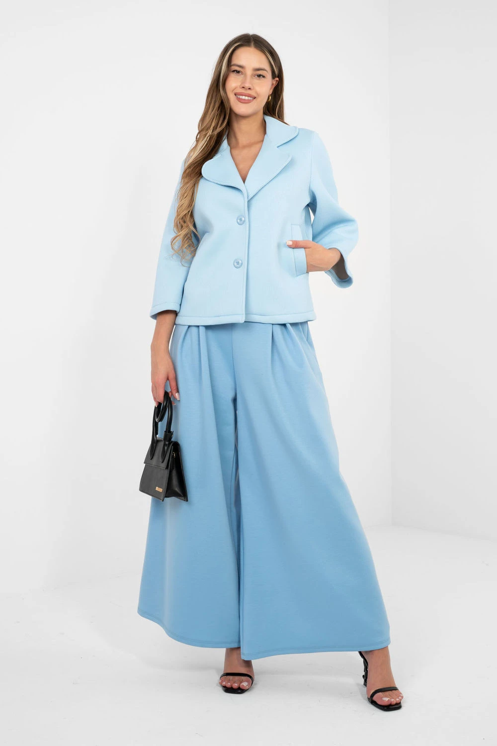 Krátký přechodný dámský kabát je ideální volbou pro ženy, které ocení ležérní styl a univerzální řešení na každý den i do práce. Skvěle se hodí do podzimní, zimní i jarní sezóny a je stylovým doplňkem mnoha outfitů. Model vyrobený z pěnového materiálu z polyesteru s přídavkem elastanu se vyznačuje různorodou fakturou, která dodává celku moderní charakter. Tkanina je příjemná na dotek, elastická a dobře padne na postavě, poskytující pohodlí při nošení. Kabát nemá žádné podšívky ani výplně, díky čemuž se skvěle hodí jako lehká vrchní vrstva v přechodných obdobích. Střih s krátkou délkou a tříčtvrtečním rukávem jemně zdůrazňuje postavu a dodává outfitu lehkosti. Klasický límec s límci přidává eleganci a jednořadé zapínání na knoflíky zdůrazňuje nadčasový charakter modelu. Praktické kapsy zvyšují funkčnost a pohodlí při nošení. Jedná se o všestranný kabát, který snadno sladíte jak s elegantními kalhotami a košilí, tak s volnějšími, každodenními kombinacemi.