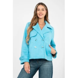 Zamšový přechodný kabát pro ženy je stylovým návrhem v casualovém provedení, ideální na každodenní nošení. Skvěle poslouží v podzimní, zimní a jarní sezóně jako lehká vrchní vrstva, která podtrhne charakter každého outfitu. Model s krátkou délkou je vyroben z příjemného na dotek materiálu z polyesteru s přídavkem elastanu. Hladká faktura mu dodává elegantní jednoduchost, zatímco jemně elastická tkanina zajišťuje pohodlné nošení a volnost pohybu. Kabát nemá žádnou výplň ani podšívku, díky čemuž se skvěle hodí do přechodových období. Dvojitý řadový zapínání na knoflíky zdůrazňuje klasický střih, zatímco límec s límci dodává celku eleganci. Dlouhý rukáv zdobený páskem s knoflíkem je decentní, stylový detail. Praktické kapsy zvyšují funkcionalitu modelu. Jedná se o univerzální kabát, který se snadno sladí jak s džíny a botami, tak s více elegantními, každodenními outfity.