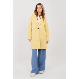 Elegantní dámský kabát s klasickým střihem je ideální volbou na přechodnou sezónu, podzim, zimu i jaro. Model se skvěle hodí jak do každodenních outfitů, tak jako vrchní oblečení do práce, podtrhující profesionální a stylový vzhled. Vyrobena z vysoce kvalitní pěnové látky na bázi polyesteru s přídavkem elastanu, kabát je lehký, pružný a příjemný na nošení. Látka dobře drží tvar, zároveň poskytuje komfort a volnost pohybu. Model bez podšívky se hodí jako univerzální oblečení na teplejší, přechodné dny. Kabát má standardní délku a dlouhý rukáv. Klasický límec a skládané klopy mu dodávají nadčasovou eleganci. Jednořadé zapínání na knoflík zdůrazňuje minimalistický charakter střihu, a praktické kapsy zvyšují funkčnost. Celkový dojem dotváří ozdobná brož umístěná na klopu, tvořící stylový, ženský akcent.