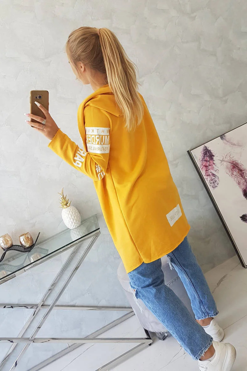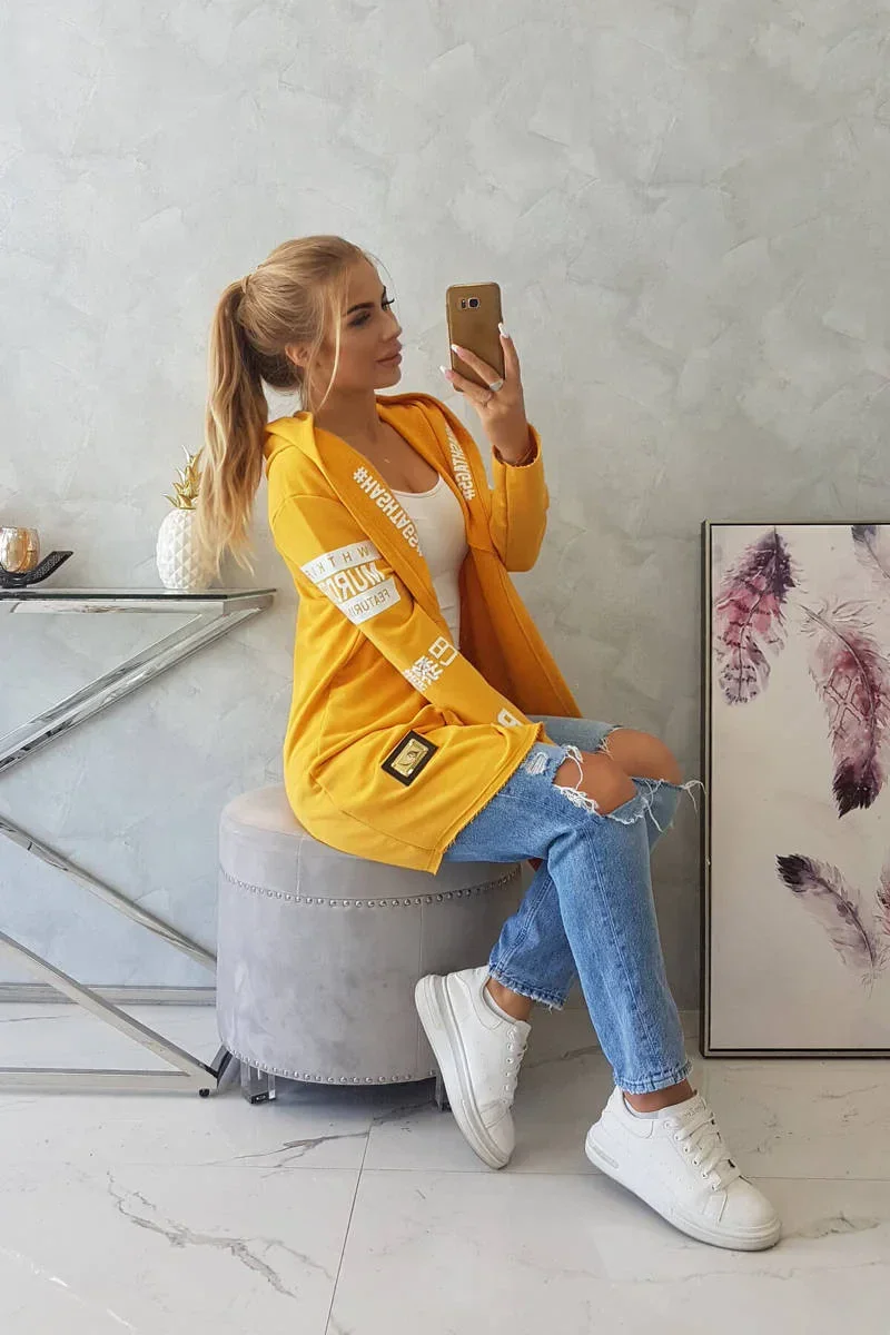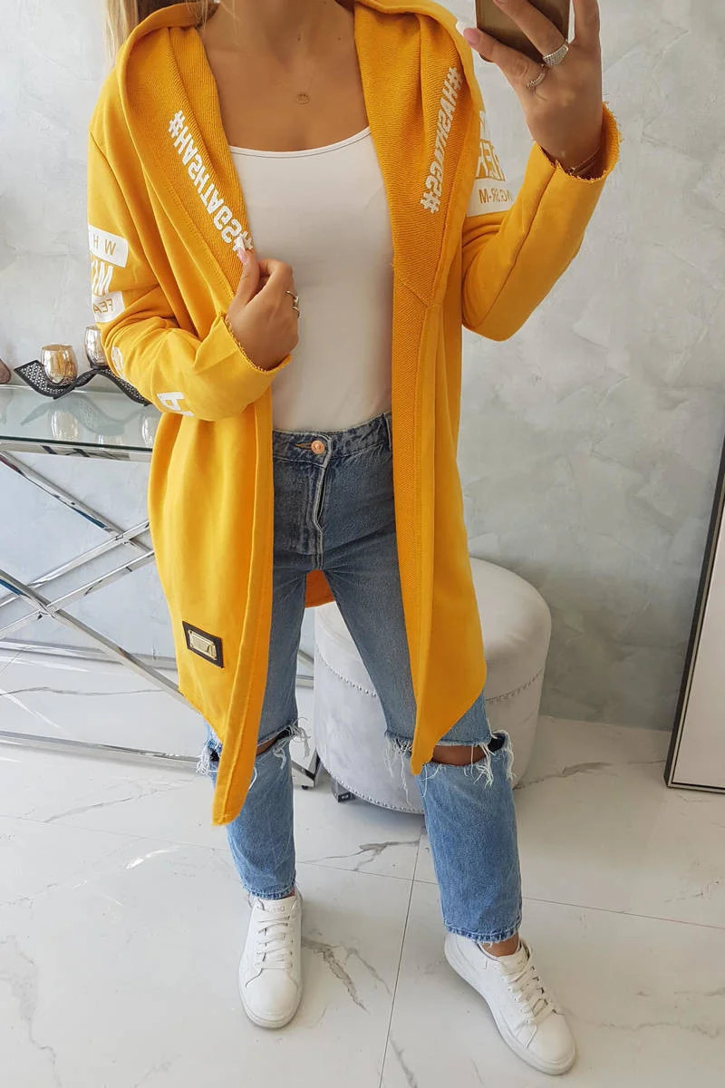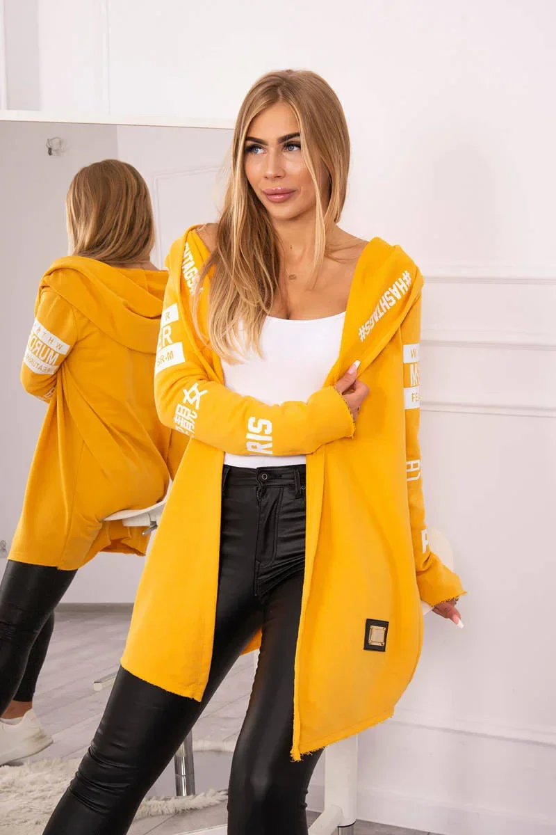 Představujeme vám dlouhou sukni s kapucí s nápisy. Bunda je vyrobena z vysoce kvalitního materiálu. Velikost je univerzální a vyhovuje dámským velikostem S, M a L