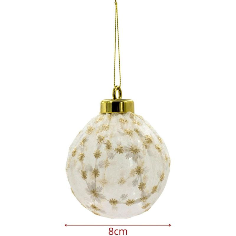 Chcete krásně a zároveň bezpečně ozdobit svůj vánoční stromek? Výběrem plastové ozdoby MICA o průměru 8 cm s krajkovým dekorem a zlatými hvězdami získáte jedinečnou dekoraci, která kombinuje elegantní vzhled s bezpečností - ideální pro domácnosti s dětmi nebo domácími mazlíčky.