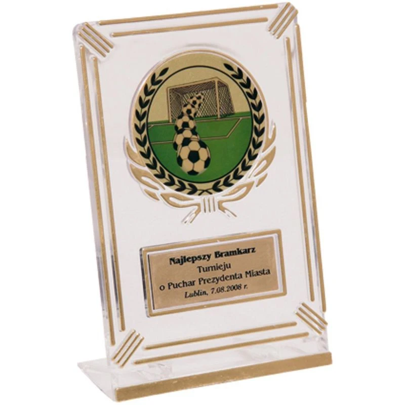 Plastová trofej - transparentní zlatá s prostorem pro 50mm vložku a plaketu o rozměrech 50 mmX20 mm T-M