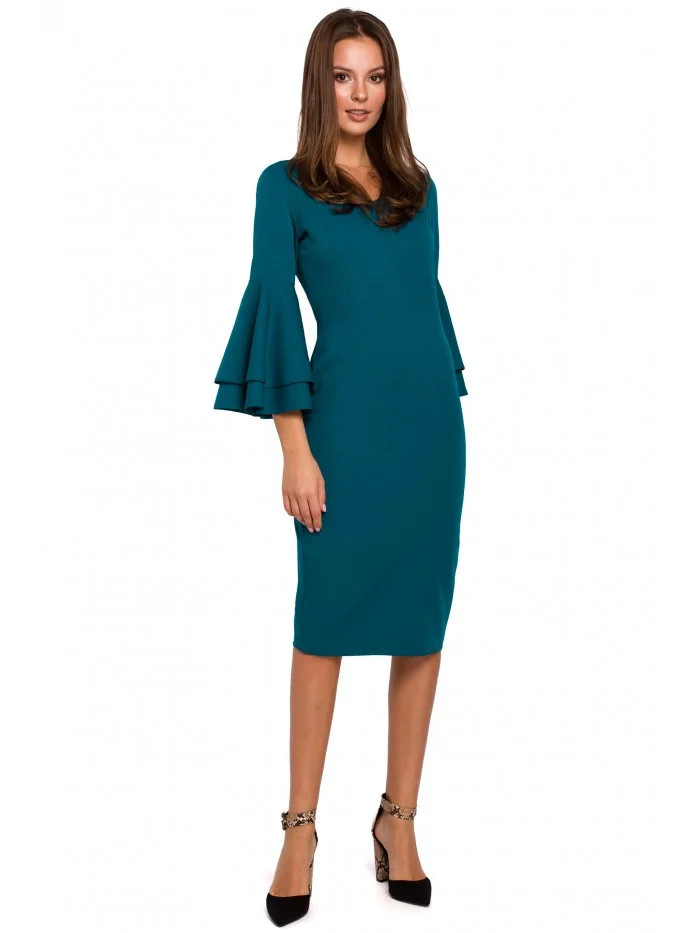 - 95 % polyester - 5 % elastan Dodejte svému večernímu outfitu trochu dramatičnosti s těmito pouzdrovými šaty obepínajícími tělo a s úžasnými zvonovými rukávy, které krásně splývají s každým vaším pohybem. PODROBNOSTI O PRODUKTU: pouzdrové šaty z tkané látky s délkou pod kolena výstřih do V tříčtvrteční volánové rukávy zadní větrací otvor skrytý zip na zádech Modelka je vysoká 175 cm a nosí velikost S