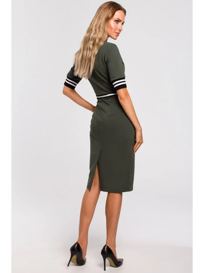 Plášťové šaty s žebrováním vojensky zelené model 18002211 - Moe