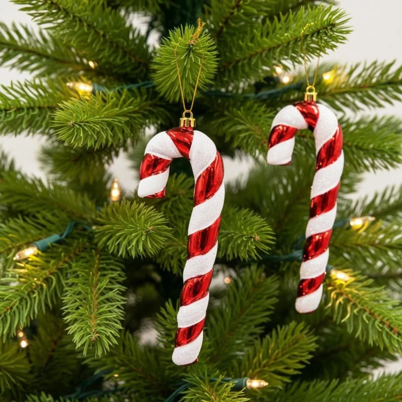PLASTOVÁ BOMBA VE FORMĚ BEZPEČNÝCH CUKROVÝCH LASEK 2SZT MICA je ideální volbou, když chcete dodat svému vánočnímu stromku tradiční kouzlo a zároveň zajistit bezpečnost.