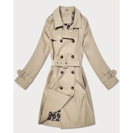 Płaszcz damski typu trencz z paskiem Goodlookin jasny beżowy (KK60416-3#)