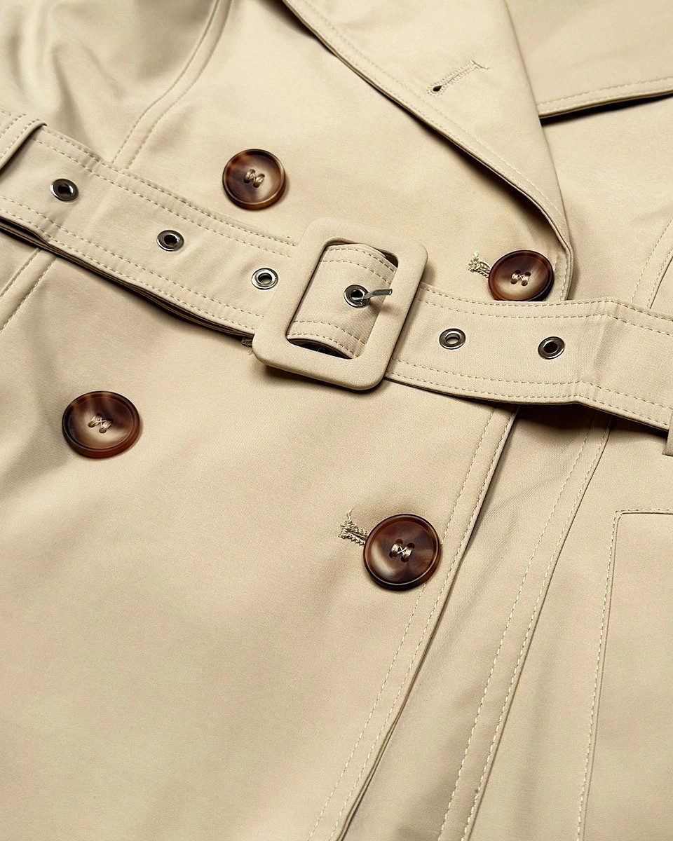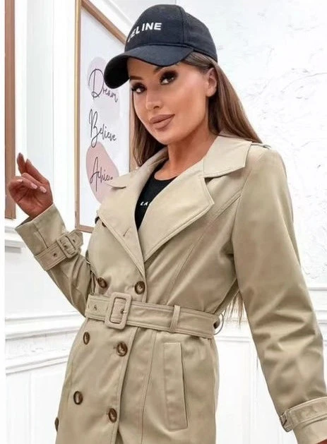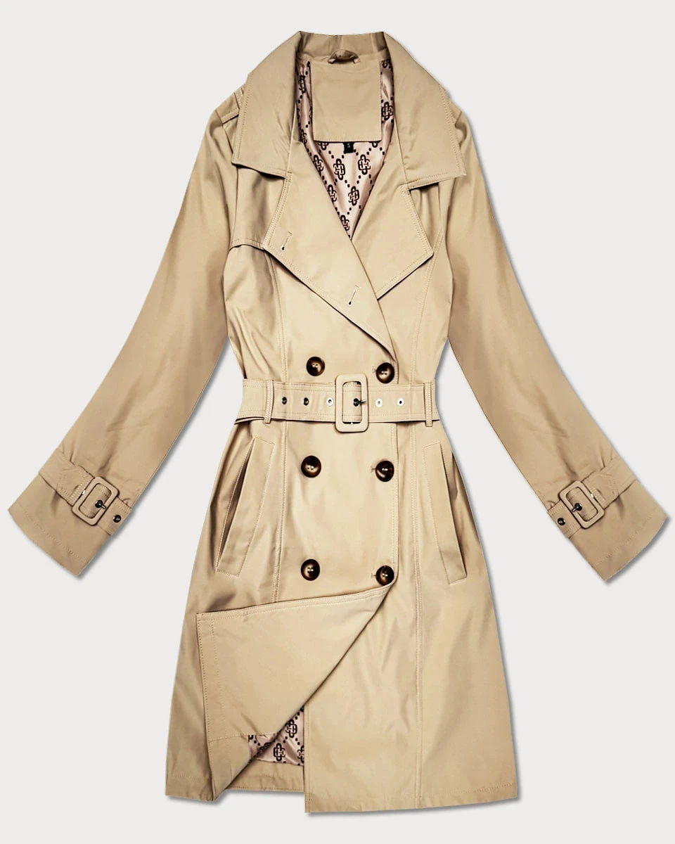 Płaszcz damski typu trencz z paskiem Goodlookin jasny beżowy (KK60417-3#)