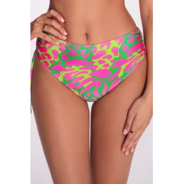 Podkreśl swoją sylwetkę i dodaj stylizacji energii z figami kąpielowymi SF 246/2 Neon Safari. Ten model został zaprojektowany tak, by optycznie modelować kształty i eksponować nogi. Po bokach wszyto regulowane troczki zakończone ozdobnymi końcówkami – dzięki nim możesz dowolnie dopasować wysokość wycięcia, wybierając pomiędzy bardziej zakrytym a seksownym fasonem. Neonowy print w intensywnym różu, limonkowej zieleni i delikatnym beżu tworzy świeży, egzotyczny efekt, który idealnie wpisuje się w wakacyjny klimat.