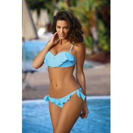 If you dream of large, firm, sexy breasts, beautifully gathered to the cleavage - this proposal is just for you. The swimsuit looks sweet and innocent, available in many, attractive colours, and each in a great, soft, elastic fabric. The bra is distinguished by a great design intended for smaller and medium-sized breasts - it is padded and has a rather large push up filling, permanently placed in the bra. Adjustable length straps, detachable, ideal for sunbathing the body. The waistband is fastened with a buckle. The panties are sexy, tied at the sides brazylians with a frill at the top. For the full effect, the panties should be pulled firmly towards the top of the hips, so that their triangular shape nicely decorates the bottom, which partially extends beyond the contour of the panties.