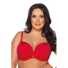 Energetyczna czerwień idealnie współgra z letnią opalenizną! Dzianina ze skrzącym połyskiem wzbogacona o złote dodatki podkreśli koloryt skóry i rozświetli plażowy outfit. Pełne miski biustonosza full cup solidnie zbiorą i podtrzymają nawet najbardziej niesforny biust, a delikatne marszczenia dodatkowo wizualnie zaokrąglą biust. Do kompletu dobierz koniecznie wielofunkcyjne figi kąpielowe SF 180/2 z regulującymi wysokość boczków troczkami.