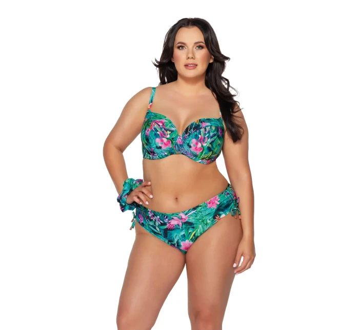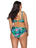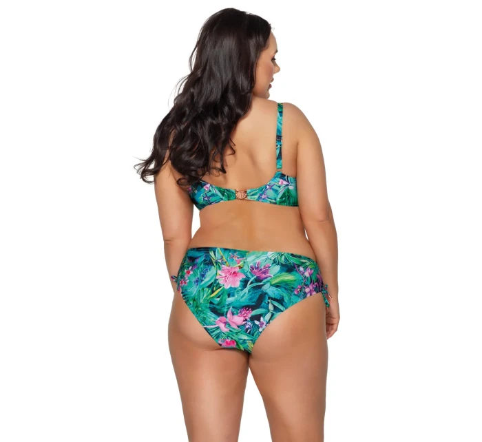 Na SK 205 se před vámi rozprostře skutečně rajská krajina! Květinová houština zasazená do mnoha odstínů zelené evokuje vzdálené prázdninové destinace. Vyztužené košíčky podprsenky s plnými košíčky zvládnou zkrotit i to nejnepoddajnější poprsí; prsa budou pohodlně stabilizovaná, shrnutá a svůdně nadzvednutá, aby koketně vystavovala na odiv váš dekolt. Přiléhavé plavkové kalhotky SF 205/2 s nastavitelnou výškou boků zvýrazňují boky a podtrhují délku nóg.