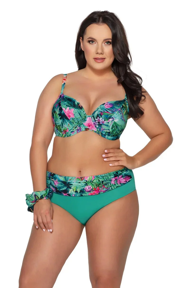 Léto je čas rozkvětu, proto vsaďte na květinový vzor SK 206! Měkká podprsenka se volně přizpůsobí tvaru prsou a přirozeně je vytvaruje. Elastický obvod a ramínka odpovídající šířce zvedají a stabilizují poprsí na správném místě a pohodlně ho podpírají. Barevně sladěný spodní díl plavek SF 206/3 s projmutým panelem maskujícím nedokonalosti opticky zeštíhluje postavu a opticky vyrovnává tělesné proporce.