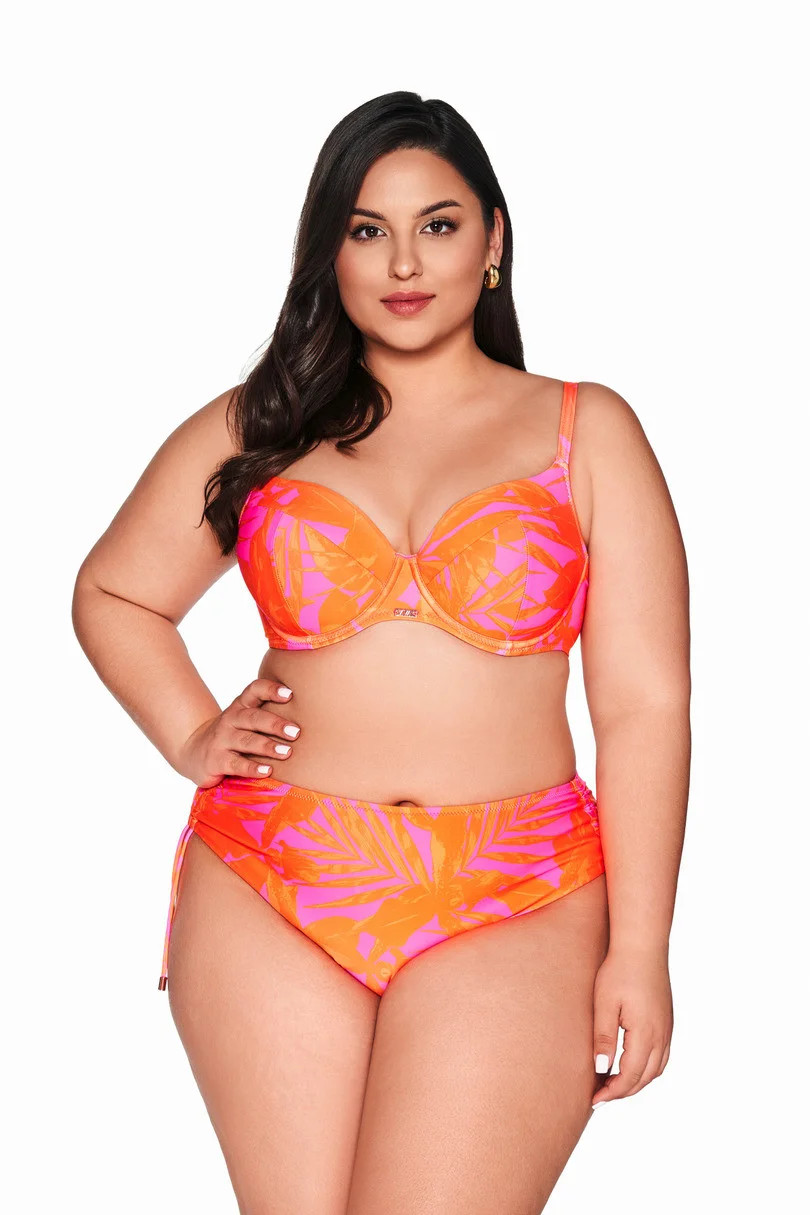 Neonově růžová a zářivě oranžová barva jsou poutavé, zatímco vyztužené košíčky podprsenky poskytují správnou podporu. Nastavitelná ramínka a zlaté doplňky dodávají exkluzivní nádech