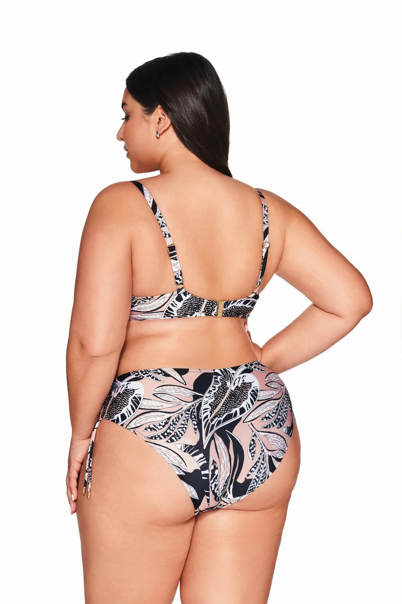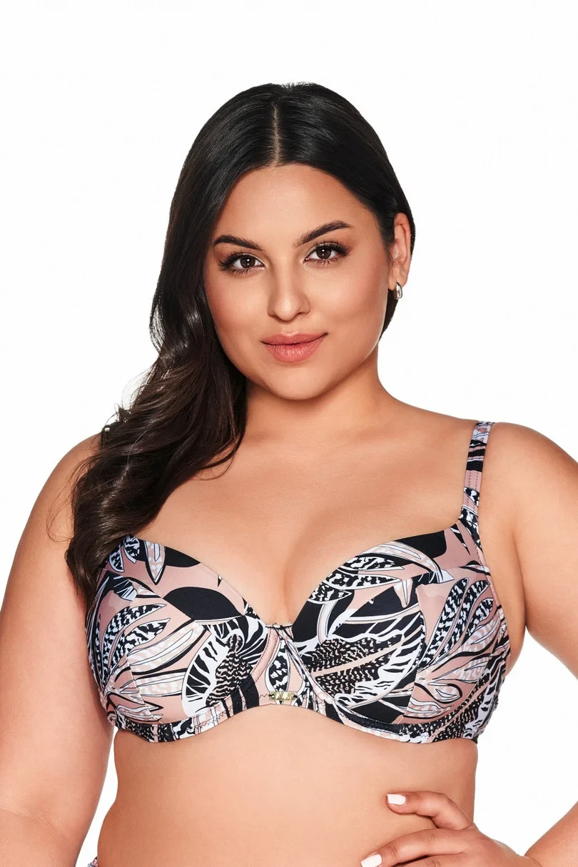 Biustonosz kąpielowy SK 220 FULL CUP wyróżnia się ponadczasową elegancją dzięki klasycznemu połączeniu czerni i koloru w stylu latte. Ten stylowy zestaw doskonale współgra z letnią opalenizną, podkreślając piękno kobiecej sylwetki.