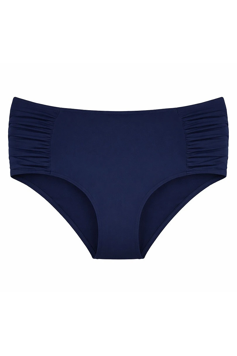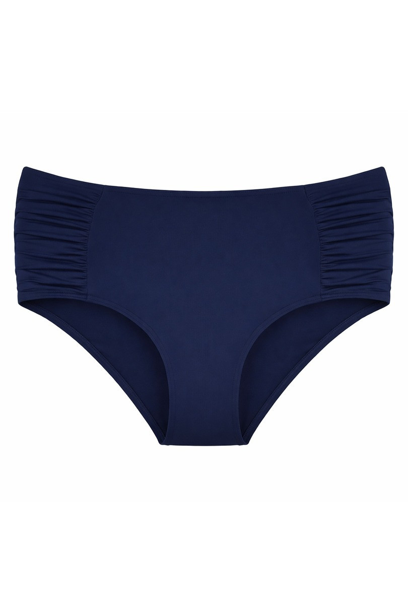 Spodní díl bikin je vyroben z vysoce kvalitního materiálu na bázi polyamidu s přídavkem elastanu, je pružný, trvanlivý a odolný vůči slunci a chlóru. Díky hladké tmavě modré barvě je model nadčasový a snadno kombinovatelný s různými plavkami.