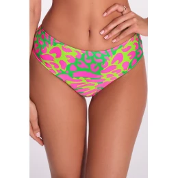 Spodní díl bikin SF 247/5 Neon Safari je ideální volbou pro ženy, které ocení pohodlí a odvážný styl. Středně vysoký, mírně vykrojený spodní díl bikin jemně zvýrazňuje hýždě a je pohodlný při nošení. Přední i zadní díl zdobí energický neonový vzor - kombinace sytě růžové, limetkově zelené a abstraktních tvarů inspirovaných exotickou přírodou. Tkanina se na slunci jemně třpytí a dokonale zvýrazní vaše opálení. Spodní díl bikin SF 247/5 tvoří dokonalý duet s podprsenkami SK 246 nebo SK 247 ze stejné kolekce.