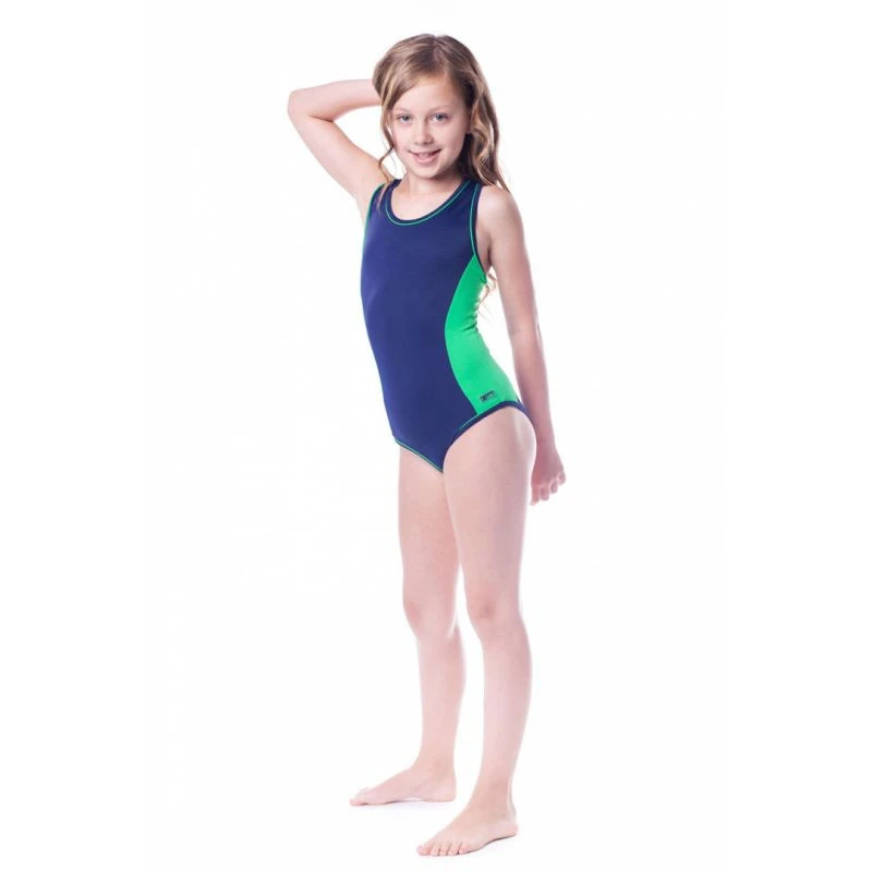 Tento model plavek byl navržen a připraven tak, aby dokonale padl a přizpůsobil se siluetě dětského těla.Tomu napomáhají dokončovací lemy i správný design ramínek.Odolný vůči chlóru.