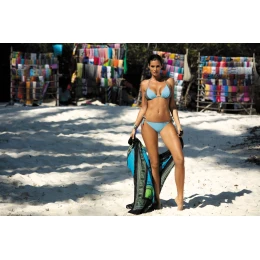 Sexy bikiny - tedy dvoudílné plavky s podprsenkou zavazovanou za krkem i na zádech a spodními díly zavazovanými na obou stranách boků. V krásných, tropických barvách. Stojí za pozornost. Podprsenka je vyztužená vložkou, kterou lze vyjmout. Dokonale sbírá prsa a výrazně je nadzvedává, čímž vytváří smyslný dekolt. Košíčky bez kostic, s možností jejich posunu na šňůrce (zavazování), bez push up. Spodní díly dobré výšky, pohodlné. Italská, kvalitní látka Carvico Tesutti.