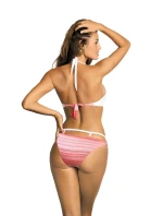 Krásné dvoudílné plavky s dobře tvarovanými košíčky, které vytvářejí svůdný dekolt. Košíčky jsou dobře vybarvené pro prsa, tvarují je a zároveň je vypínají. Košíčky jsou z vnitřní strany vyztužené a obohacené o vestavěnou push-up výplň (k dispozici ve všech velikostech), s bočními velrybími kosticemi. Krásné lemování okamžitě upoutá pozornost. Ramínka s broží, elegantní, zavazují se za krkem. Pas se pohodlně zavazuje na zádech. Ve spodní části - jemně nařasená látka, která podtrhuje výjimečnost plavek. Kalhotky s přídavným páskem, který obepíná boky. Měkké, podšité.