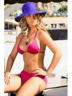 Krásné dvoudílné plavky s dobře tvarovanými košíčky, které vytvářejí svůdný dekolt. Košíčky jsou dobře vybarvené pro prsa, tvarují je a zároveň je vypínají. Košíčky jsou z vnitřní strany vyztužené a obohacené o vestavěnou push-up výplň (k dispozici ve všech velikostech), s bočními velrybími kosticemi. Krásné lemování okamžitě upoutá pozornost. Ramínka s broží, elegantní, zavazují se za krkem. Pas se pohodlně zavazuje na zádech. Ve spodní části - jemně nařasená látka, která podtrhuje výjimečnost plavek. Kalhotky s přídavným páskem, který obepíná boky. Měkké, podšité.