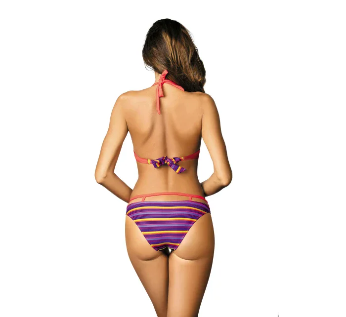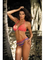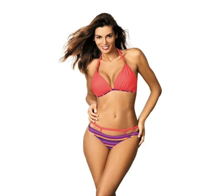 Krásné dvoudílné plavky s dobře tvarovanými košíčky, které vytvářejí svůdný dekolt. Košíčky jsou dobře vybarvené pro prsa, tvarují je a zároveň je vypínají. Košíčky jsou z vnitřní strany vyztužené a obohacené o vestavěnou push-up výplň (k dispozici ve všech velikostech), s bočními velrybími kosticemi. Krásné lemování okamžitě upoutá pozornost. Ramínka s broží, elegantní, zavazují se za krkem. Pas se pohodlně zavazuje na zádech. Ve spodní části - jemně nařasená látka, která podtrhuje výjimečnost plavek. Kalhotky s přídavným páskem, který obepíná boky. Měkké, podšité.