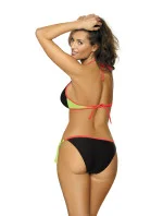 Dvoudílné plavky v krásných tropických barvách. podprsenka je navržena pro střední a menší poprsí, vyztužená, s trvale umístěnou push-up výplní. spolu se svislou kosticí pevně přibližuje prsa k dekoltu, nadzvedává je a opticky zvětšuje. Vytváří smyslný dekolt. ozdobné, kontrastní lemování v horní části podprsenky přechází do štíhlých ramínek, pěkně zavázaných za krkem. obvod s vsadkami v kontrastní, šťavnaté barvě, zavazuje se vzadu. kalhotky dokonale sladěné s podprsenkou, hladké, sexy zavázané na bocích, působí mega žensky. v těchto plavkách se na pláži určitě budete vyjímat!
