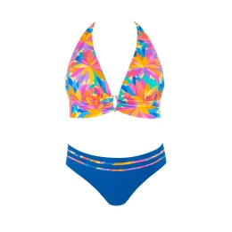 Rozkwitnij tego lata w pełnym kolorów kostiumie kąpielowym Capri 4 S556CP4 od SELF. Górna część w energetyzujący, kwiatowy wzór przyciąga wzrok i podkreśla biust dzięki usztywnianym miseczkom i zmysłowemu wiązaniu na szyi oraz plecach. Dół w intensywnym odcieniu błękitu z subtelnymi kolorowymi paskami zapewnia idealne dopasowanie i wygodę podczas każdej wakacyjnej aktywności.