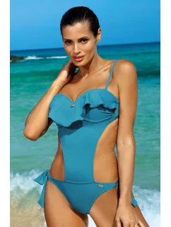 Velmi sexy jednodílné plavky monokiny s brazilskými zády. Hladké, s malou zlatou bižuterní mašličkou ve výstřihu a koketním volánkem v momentálně nejmódnějším kubánském stylu. Ženské, jemné, smyslné... Přivítejte jeden z nejžhavějších modelů sezóny!