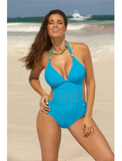 Vyztužené košíčky s nevyjímatelnou trvalou push-up výplní - skvělé pro tvarování prsou, jejich pozvednutí a optické zvětšení. Ramínka zcela odepínací, skvělá i pro opalování v dekoltu a na ramenou. Pas se zapíná na přezku. Spodní díl plavek se pohodlně zavazuje na bocích. Zadní střih mírně odhalující hýždě (brazilský typ). Můžete si na něj obléknout pareo a pohodlně se procházet po pláži. Model z italské, elastické látky.