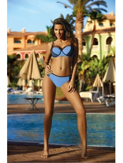 Opravdový HIT letošní sezóny! Výjimečné plavky se speciální konstrukcí, která připomíná sexy bardotku. Vyztužené košíčky s podvazky, zevnitř obohacené o tzv. permanentní push up. Pokud sníte o sexy zvednutém, opticky zvětšeném poprsí... už prostě nemusíte hledat dál. Podprsenka perfektně drží prsa na svém místě. Elegantně zvýrazňuje dekolt. Skvělý výběr barev, námořnický styl (ideální na pláž). Má tenká, příjemná ramínka zavazující se za krkem, která lze zcela odepnout, čímž vznikne model ideální pro rovnoměrné opalování. Vzadu se zavazuje na mašli.