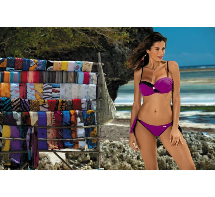 Jedny z nejkrásnějších dvoudílných plavek z této kolekce. Krásné, ženské, elegantní... Podprsenka s překrytým výstřihem, uprostřed zdobená krásnou broží. Vypadá obzvlášť dobře, zejména proto, že výrobce navrhl velmi svůdnou konstrukci. Její košíčky byly vhodně vyztuženy, vyztuženy velrybími kosticemi a obohaceny kapsičkami pro přiložené push-up košíčky - dokonale sbírají prsa, zvedají je a přiměřeně zvětšují. Vytvářejí fenomenální dekolt. Ramínka jsou odepínací, délkově nastavitelná, ideální na opalování. V pase se pohodlně zapínají vzadu na přezku. Kalhotky jsou hladké, na bocích zavazovací. Vřele doporučujeme!