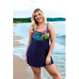 Model LIMASSOL 5 S687V3LI5 to niezwykle kobiecy i komfortowy dwuczęściowy kostium kąpielowy z efektowną spódniczką, idealny dla pań, które cenią styl i wygodę. Biustonosz z fiszbiną i usztywnianymi miseczkami gwarantuje optymalne podtrzymanie biustu, a szerokie, regulowane ramiączka zapewniają wygodę noszenia i indywidualne dopasowanie. Górna część przyciąga wzrok energetycznym, tropikalnym printem w liście, który kontrastuje z jednolitą granatową spódniczką. Spódniczka maskuje biodra i uda, nadając sylwetce lekkości i gracji. W zestawie dołączone są klasyczne figi z pełnymi bokami, które zapewniają pełne krycie i komfort. Materiał odporny na chlor sprawia, że kostium sprawdzi się zarówno na plaży, jak i na basenie, zachowując swoje kolory i kształt przez długi czas.