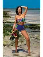 Tato podprsenka s vyztuženými košíčky, kosticemi a velkým push-upem okamžitě pozvedne, vytlačí nahoru a opticky zvětší vaše prsa, takže budete na pláži vypadat sexy. Push-up se dodává v každé velikosti plavek a není z modelu snímatelný. Ramenní popruhy jsou zcela odnímatelné. Svázané vzadu. Kalhotky jsou vyšší, zakrývají bříško a jejich květované boky navíc pomáhají opticky zeštíhlit linii boků. Jedny z nejlepších plavek sezóny! Mega dávka ženskosti! Italská tkanina. Složení: 80 % polyamid, 20 % elastan.