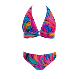 Cechą charakterystyczną tego stroju jest wiązanie na szyi, które pięknie eksponuje ramiona i dekolt, dodając całości lekkości i kobiecego uroku. Regulowane ramiączka z mikrofibry są przyjemne w dotyku i zapewniają idealne dopasowanie. Konst
